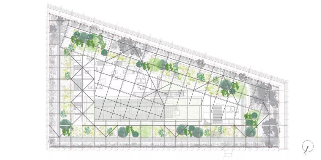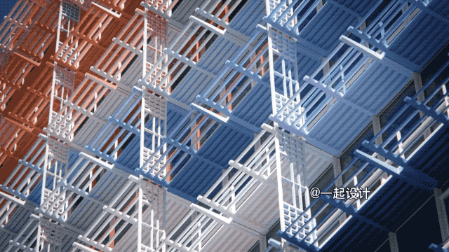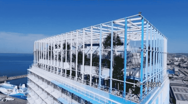 外牆構架從底延伸到頂部,将屋頂的設備圍合起來,形成一個有框架感的整體。