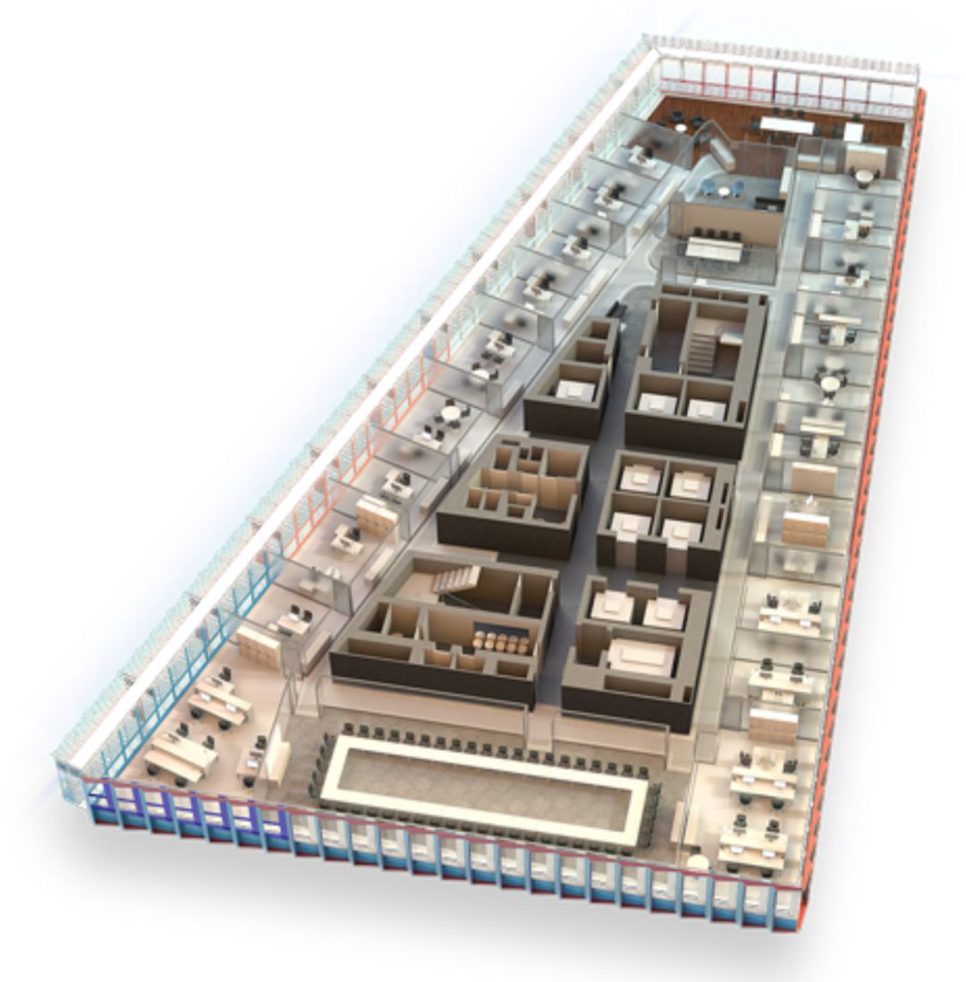 大樓高135米,共27層,總面積到達35,000平方米的辦公室。